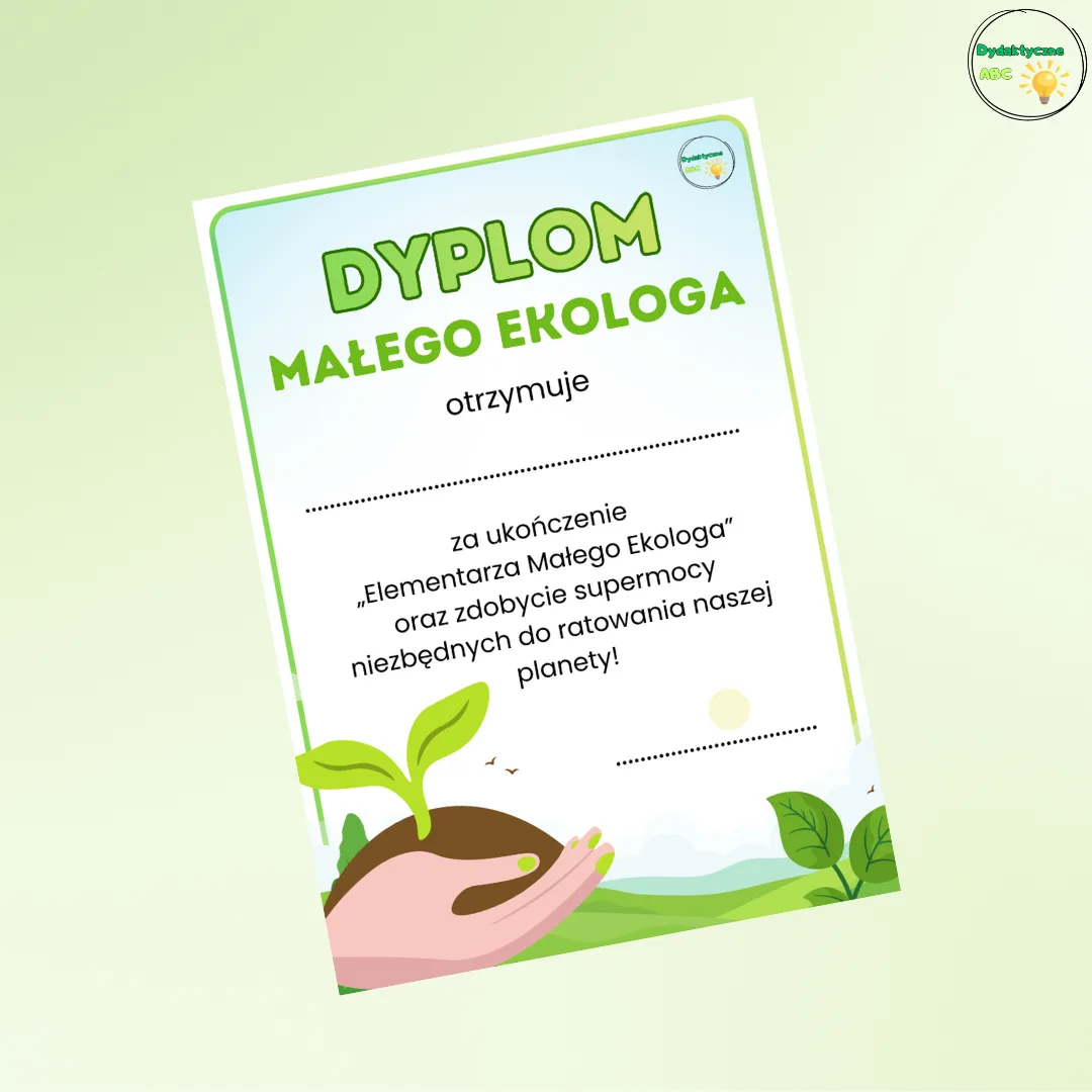 Oficjalne zwieńczenie zajęć! Dyplom do samodzielnego wpisania imienia, który wzmacnia poczucie dumy i sprawstwa u Małego Ekologa.